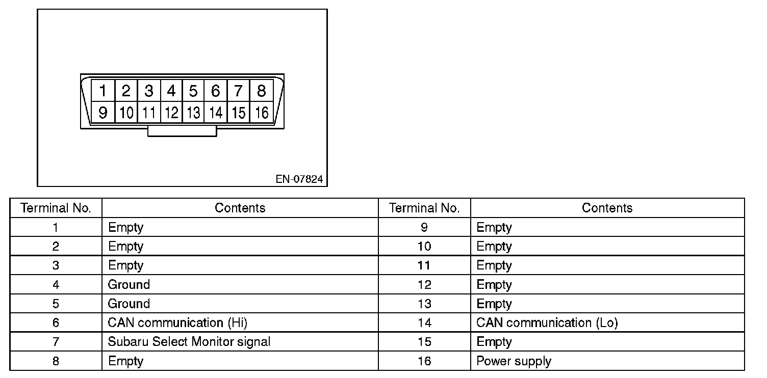 Data Link ConnectorNOTE: This connector is used for Subaru Select Monitor.