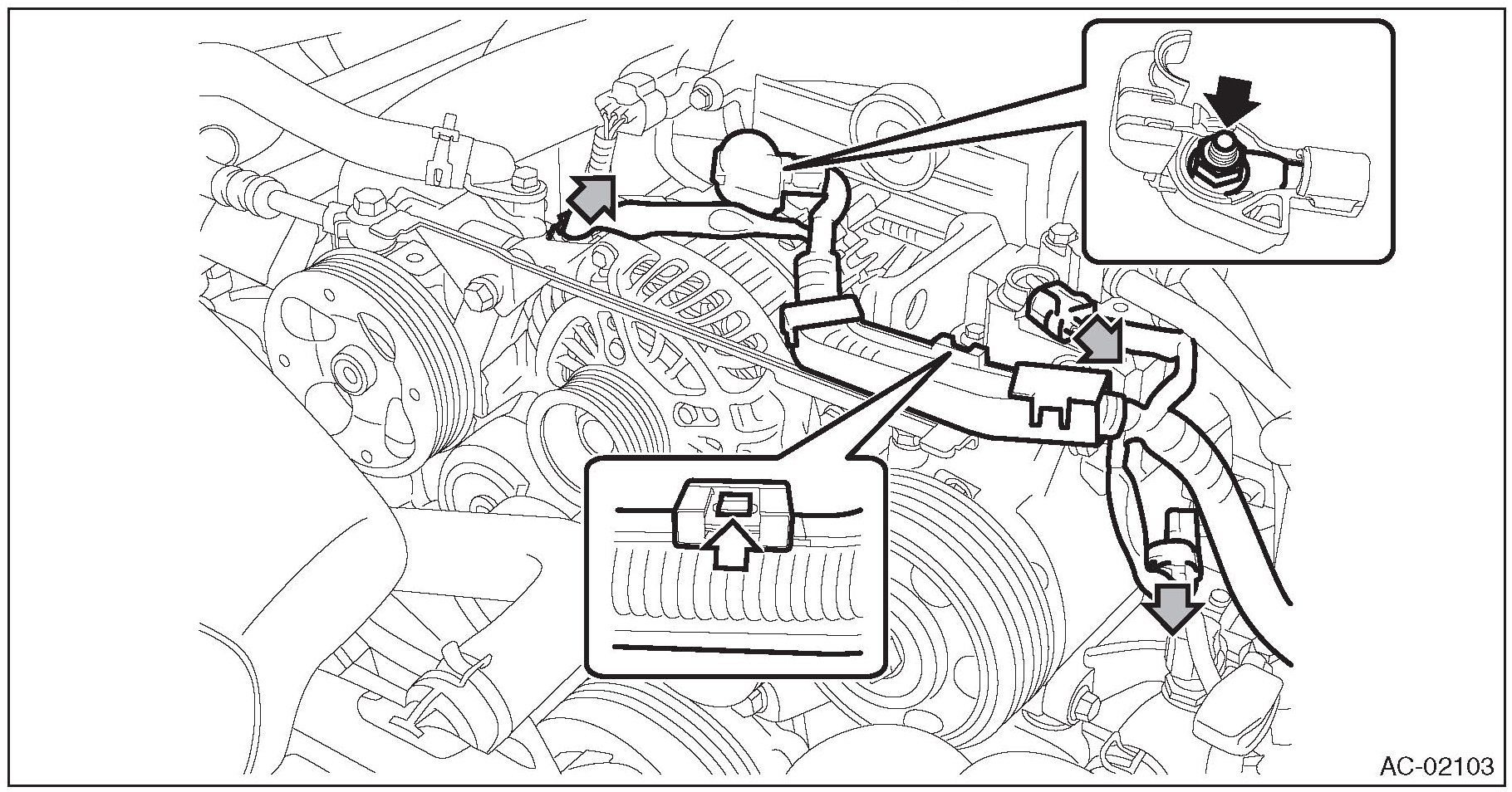 6. Move the alternator harness to the right