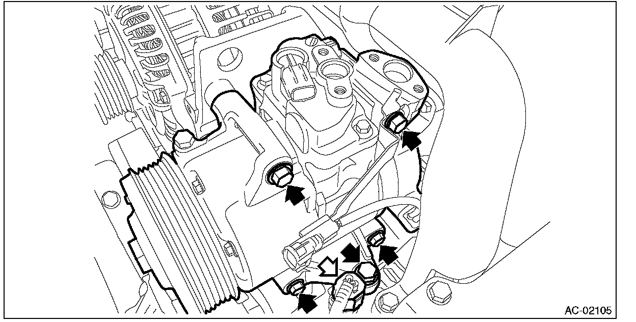 2. Remove the bolts and remove the compressor.