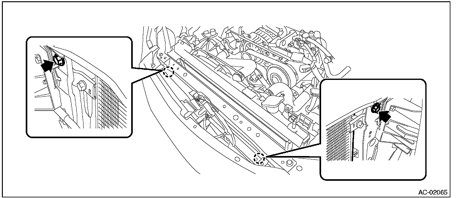 5. Remove the bolts and remove the radiator upper bracket.
