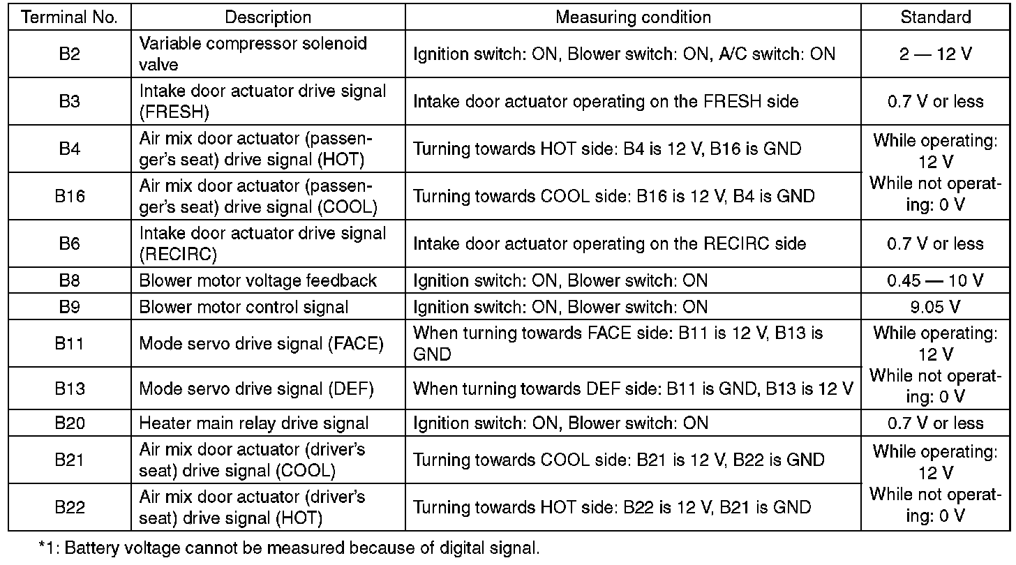 Auto A/C Control Module I/O SignalELECTRICAL SPECIFICATION
