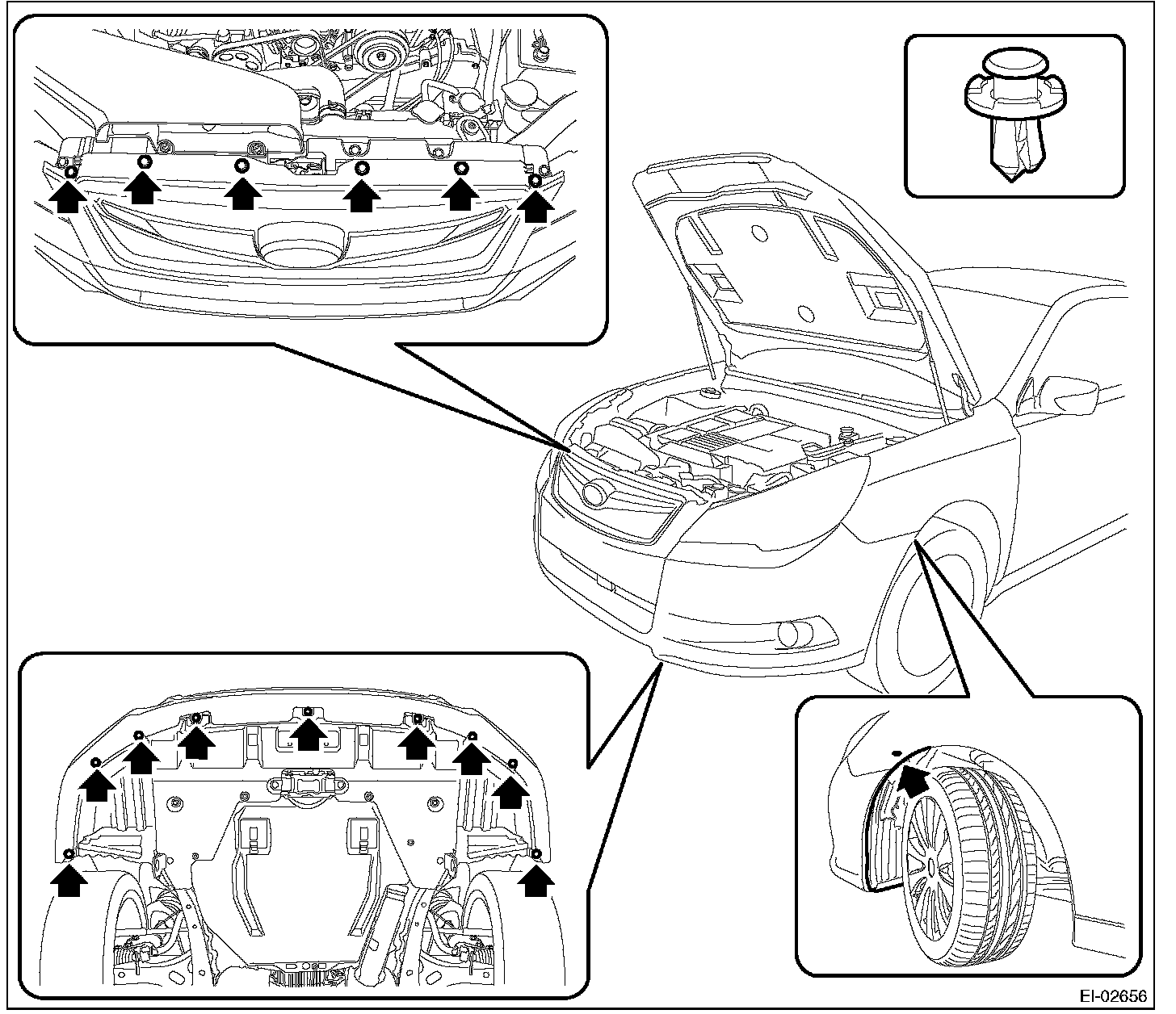 2. Remove the clips at the upper side of the bumper.