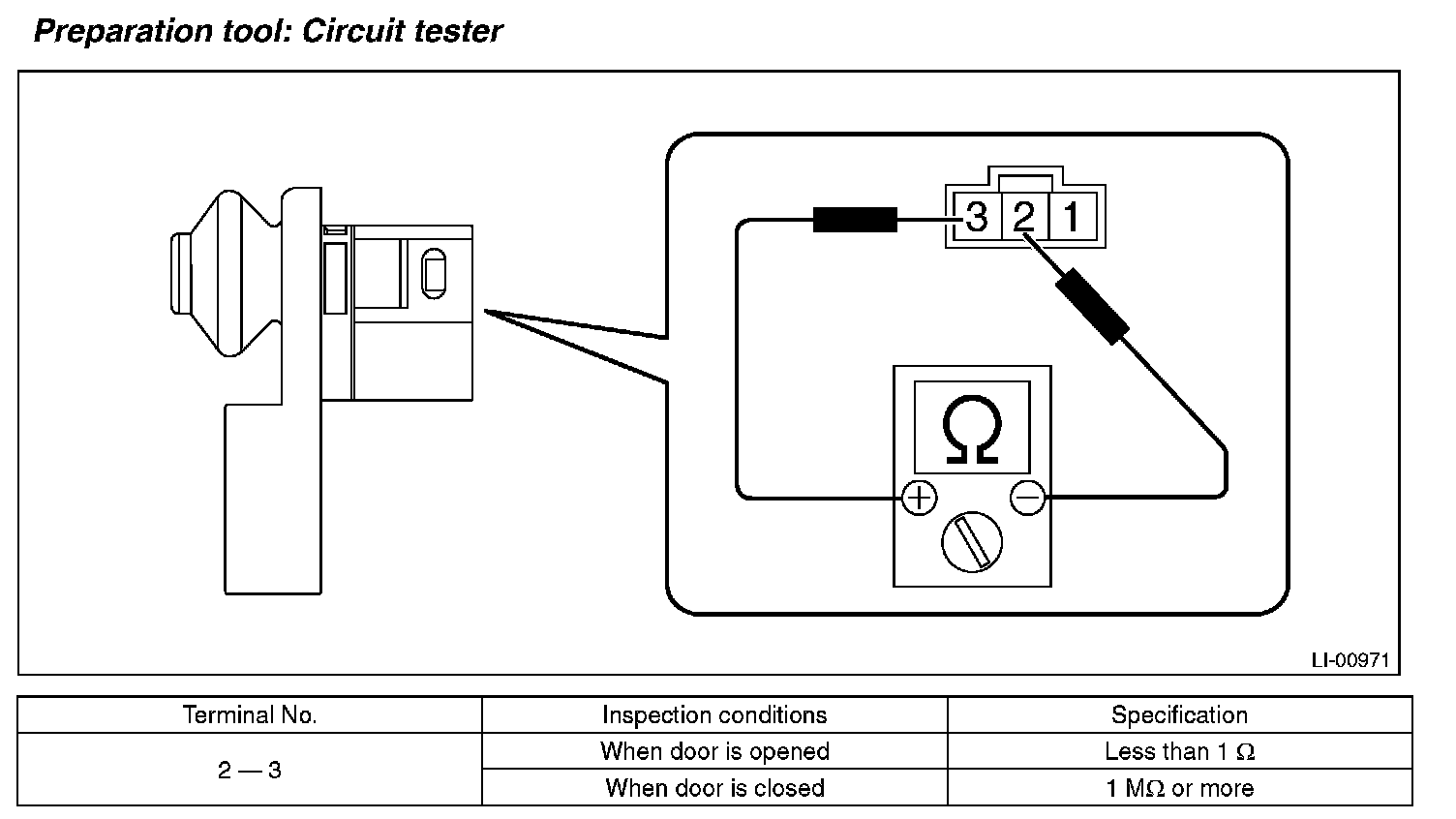 2. Measure the resistance between door switch terminals.