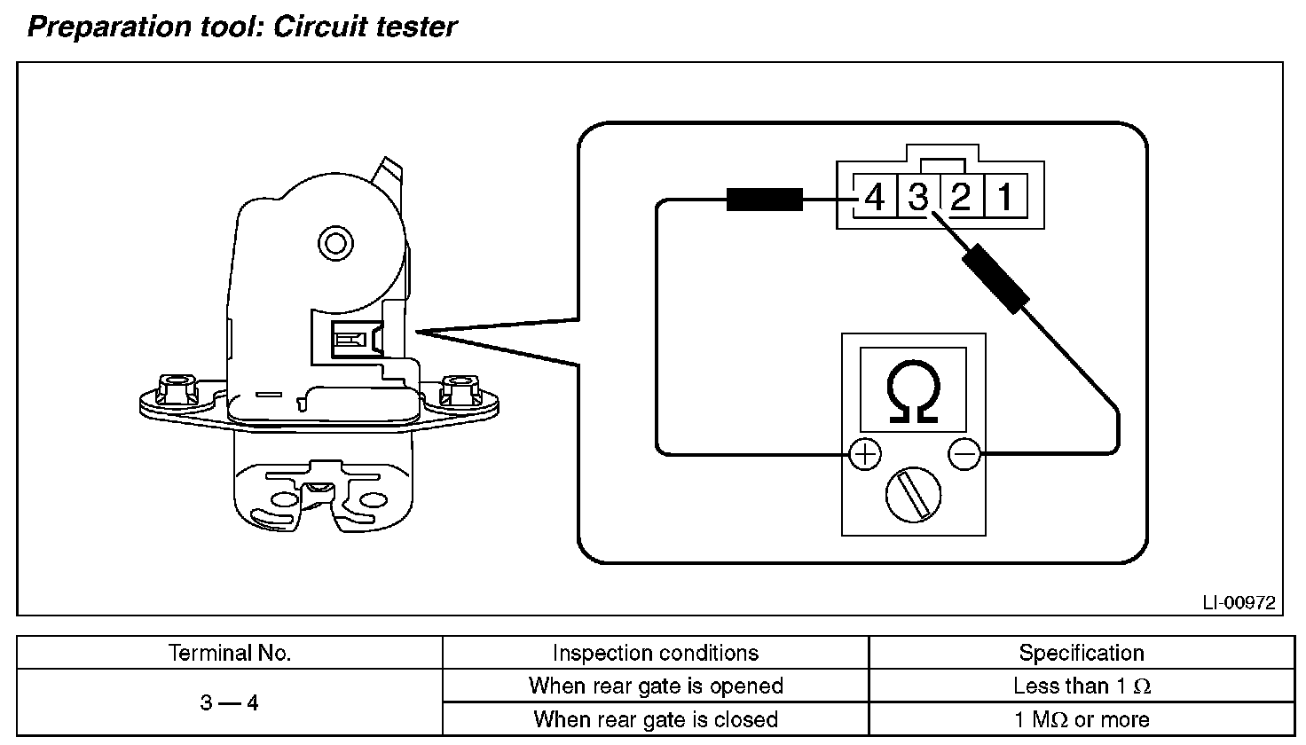 3. If the inspection result is not within the standard value, replace the rear gate latch and actuator assembly.
