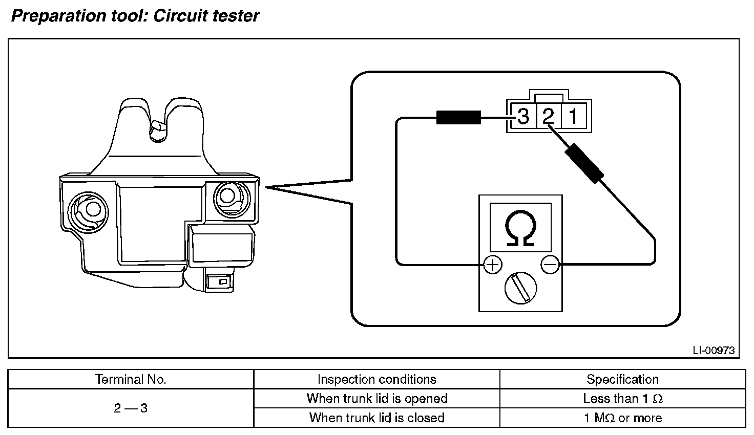 2. Measure the resistance between trunk lid switch terminals.