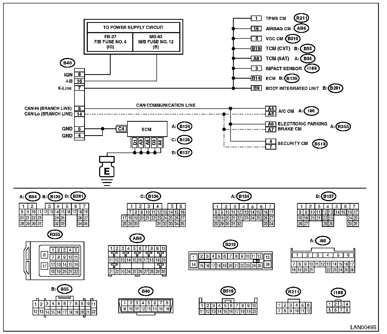 - For the control modules that read trouble code and current data using CAN communication circuit, perform diagnosis following DTCs for CAN communications.