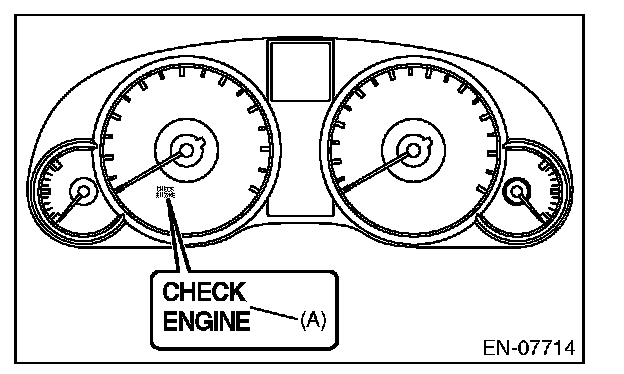 1. When the ignition switch is turned to ON (engine OFF), the malfunction indicator light (A) in the combination meter illuminates.
