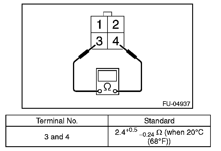 Measure the resistance between front oxygen (A/F) sensor terminals.