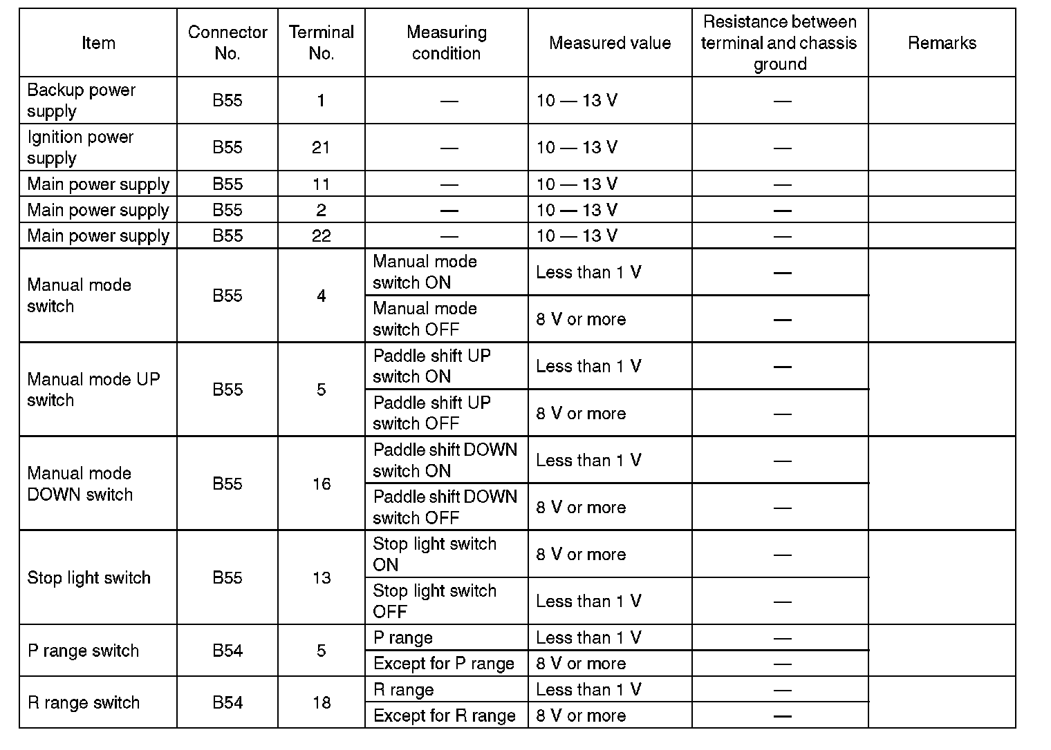 Transmission Control Module (TCM) I/O Signal Electrical Specification (Part 3):