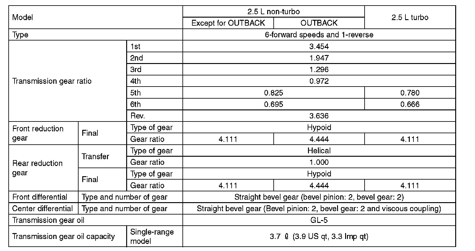 Manual Transmission and Differential Specification: