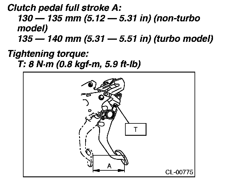 2) If the clutch pedal stroke is out of specification, adjust the stroke.
