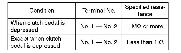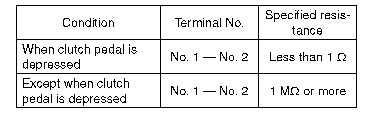 2) Check the clutch switch for continuity. If the continuity is not at the standard value, replace the switch.