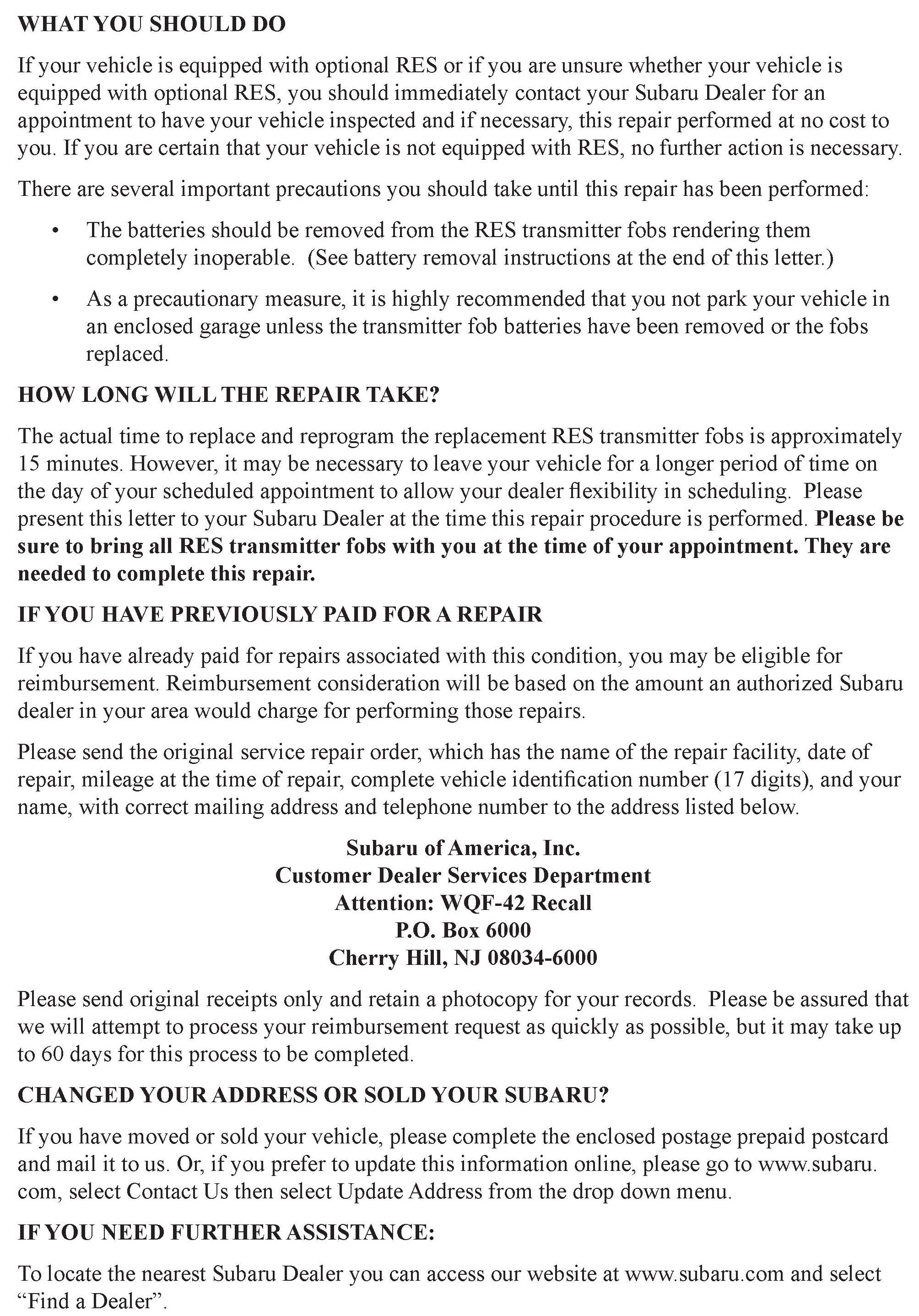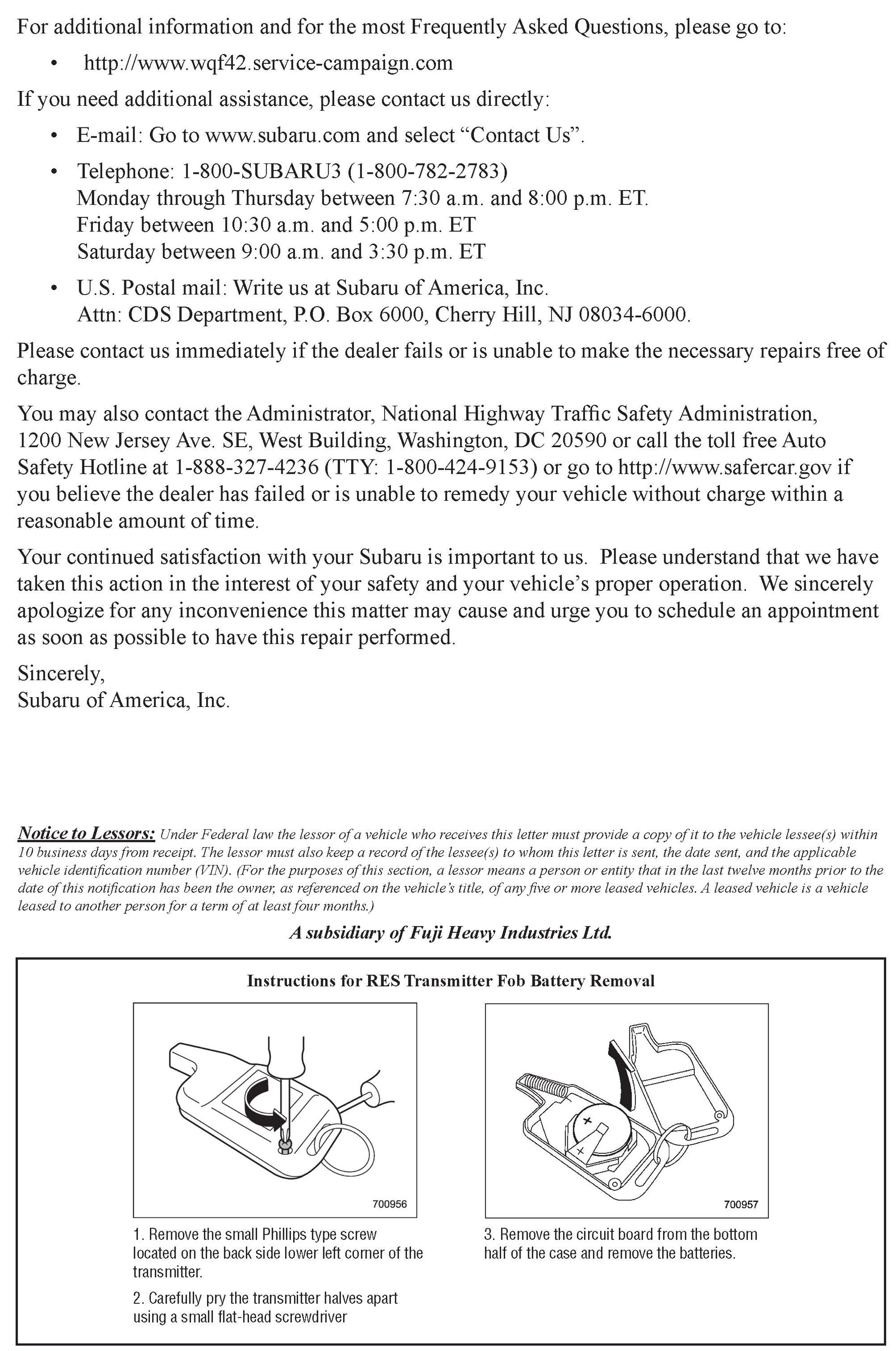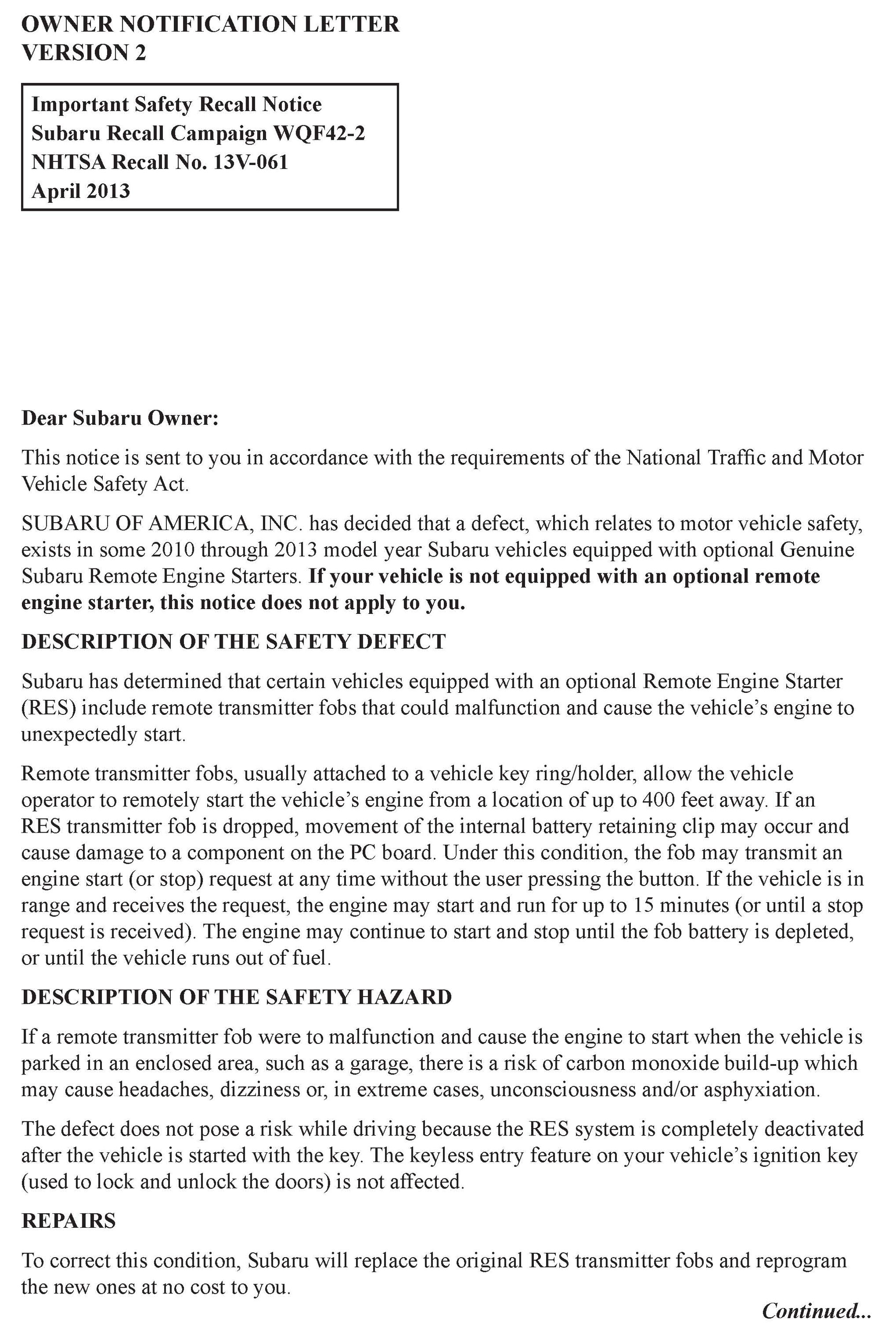 Recall - Remote Engine Starter Fob Replacement