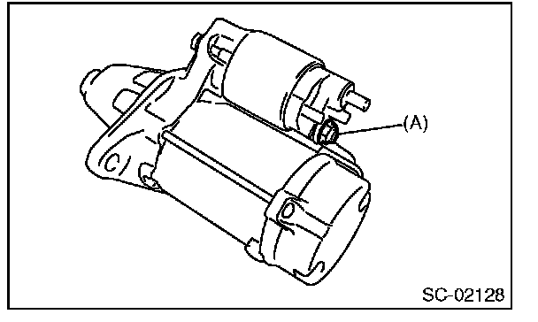 1. Remove the nut which holds terminal M (A) of the magnet switch assembly, then disconnect the harness from the terminal.