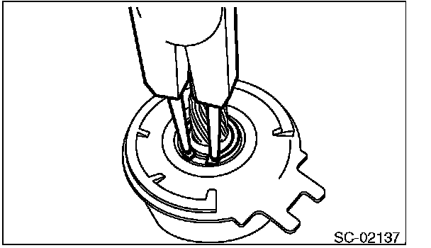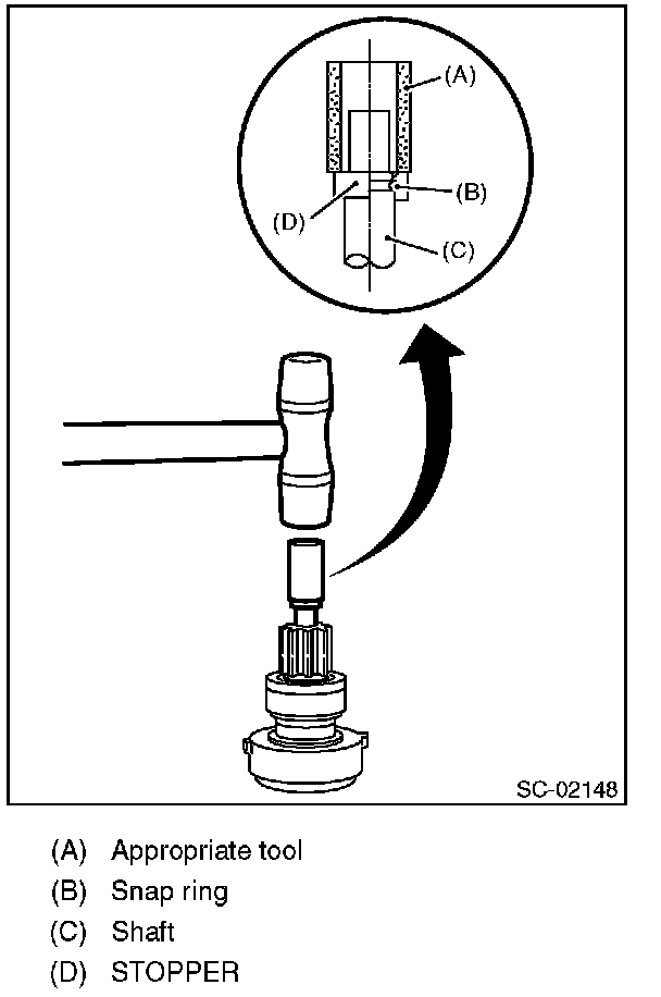 1. Use an appropriate tool (such as a fit socket wrench), remove the stopper from snap ring by lightly tapping the stopper with a plastic hammer.