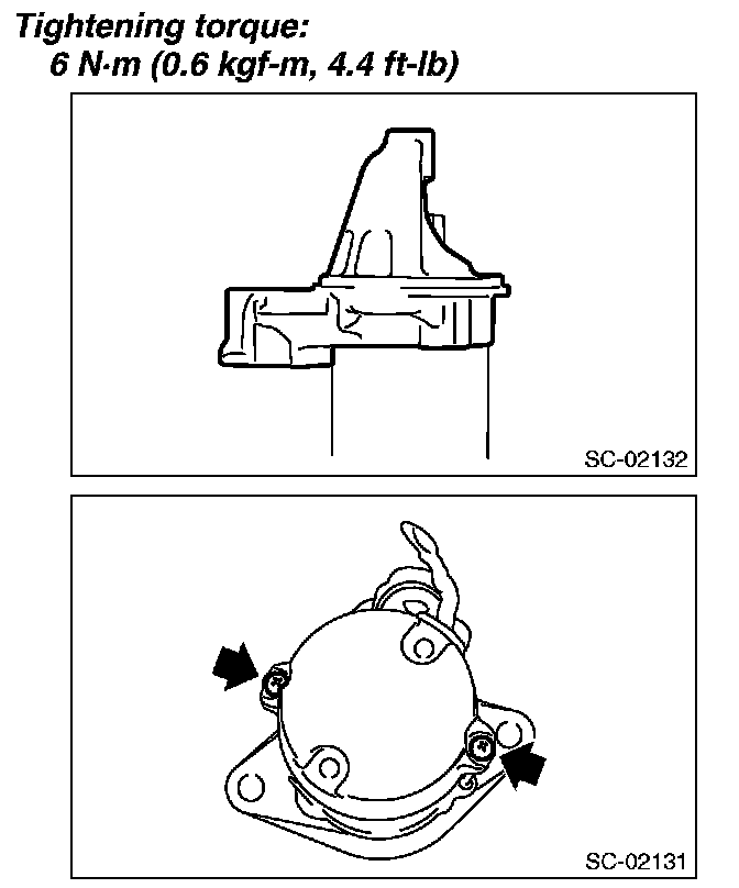 9. Install the starter housing, and tighten through bolts on both sides.