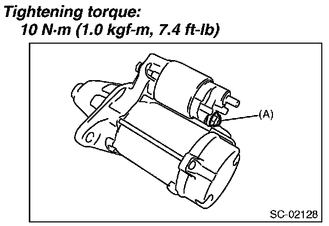 12. Install the harness to the terminal M (A) of the magnet switch assembly, and tighten the nut.