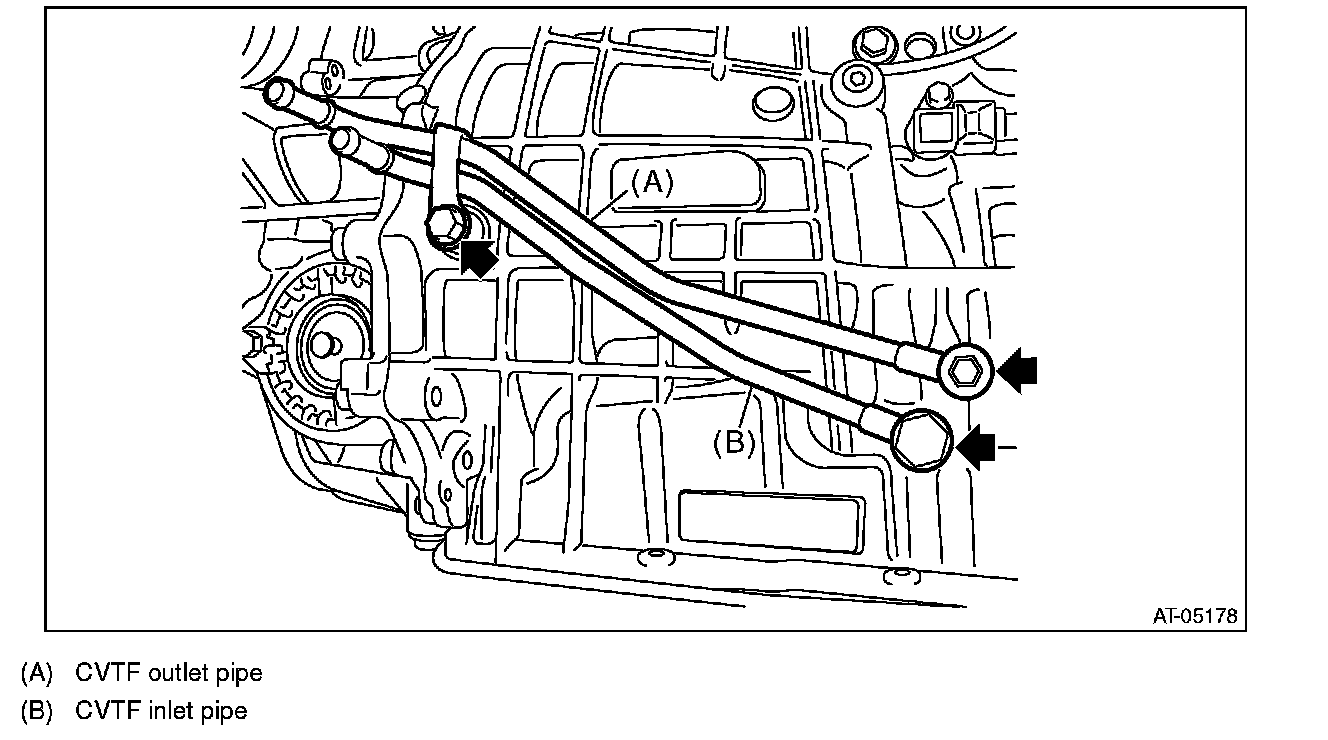 6) Remove the CVTF inlet pipe and CVTF outlet pipe.