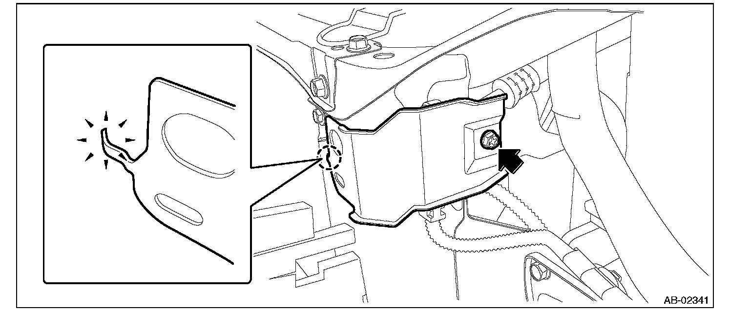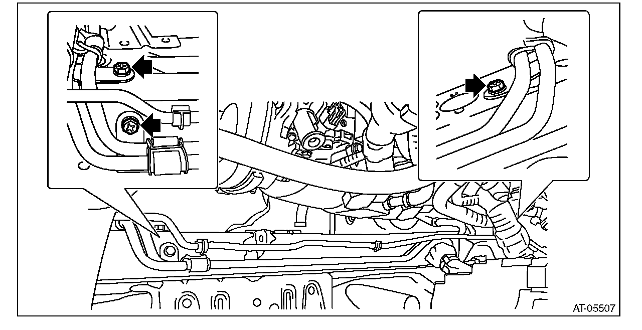 13) Remove the CVTF cooler pipe assembly mounting bolt.