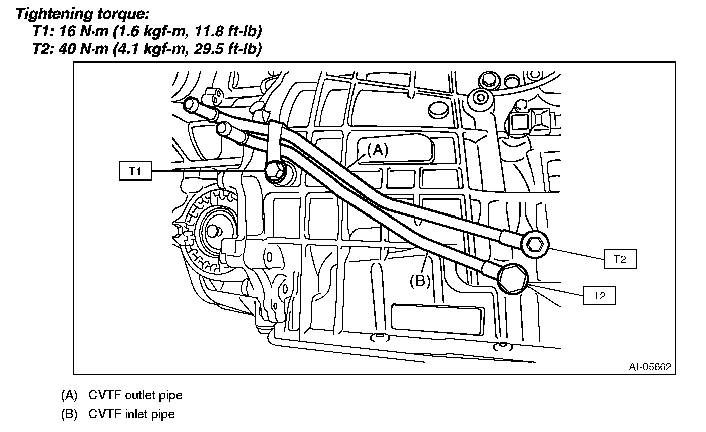 1) Temporarily attach the CVTF cooler pipe assembly to vehicle.