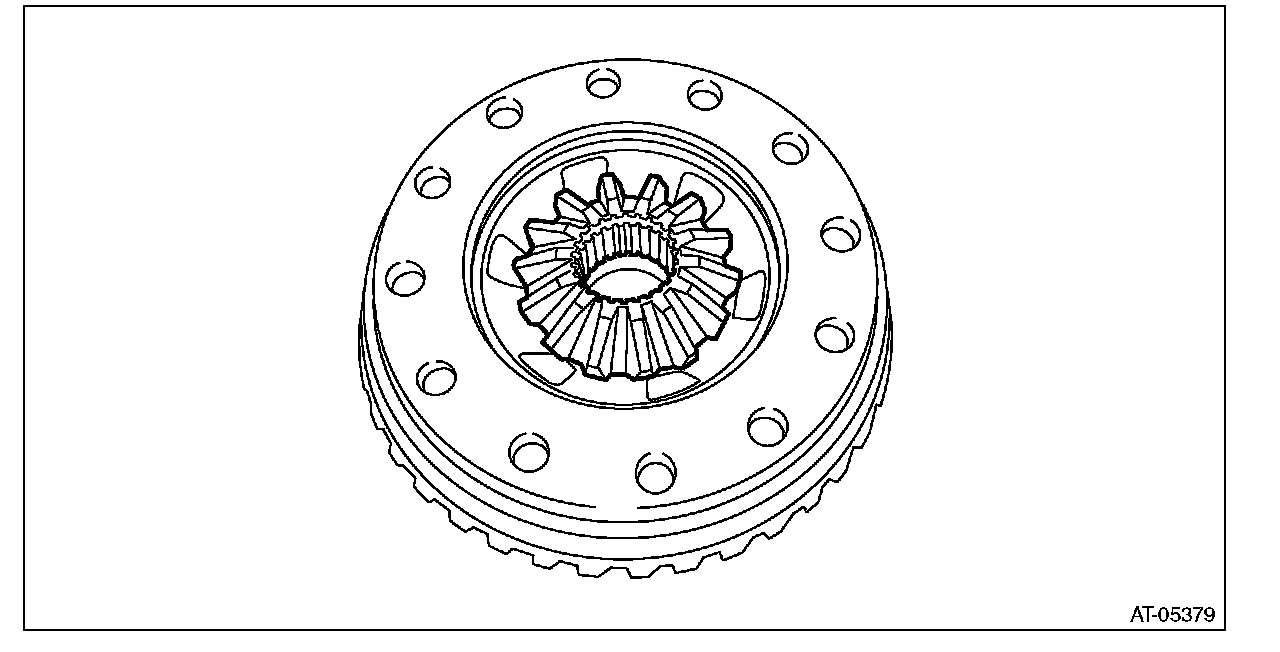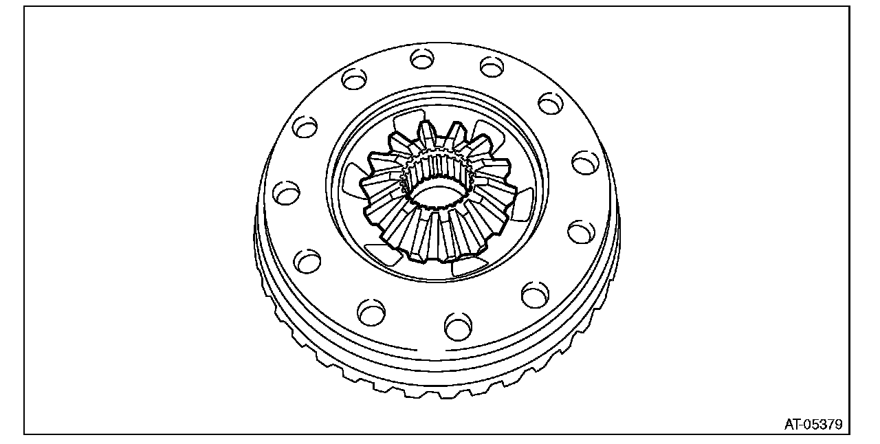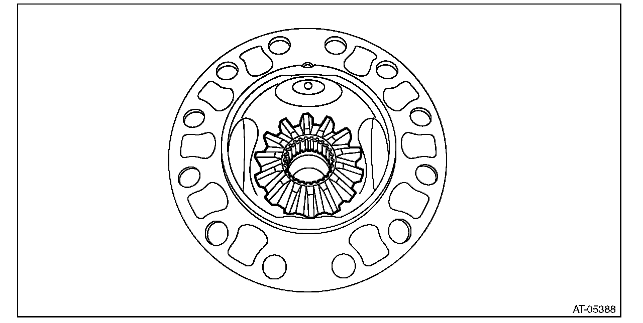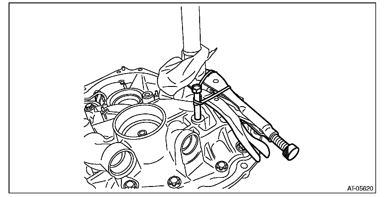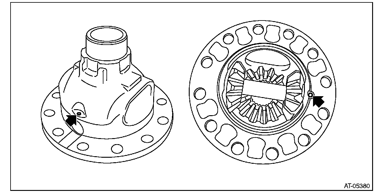 ^ Support the differential case assembly by hand to avoid damaging the retainer mounting hole of the converter case.