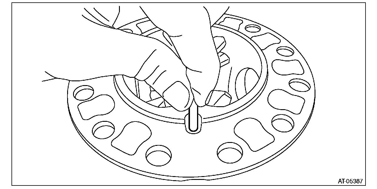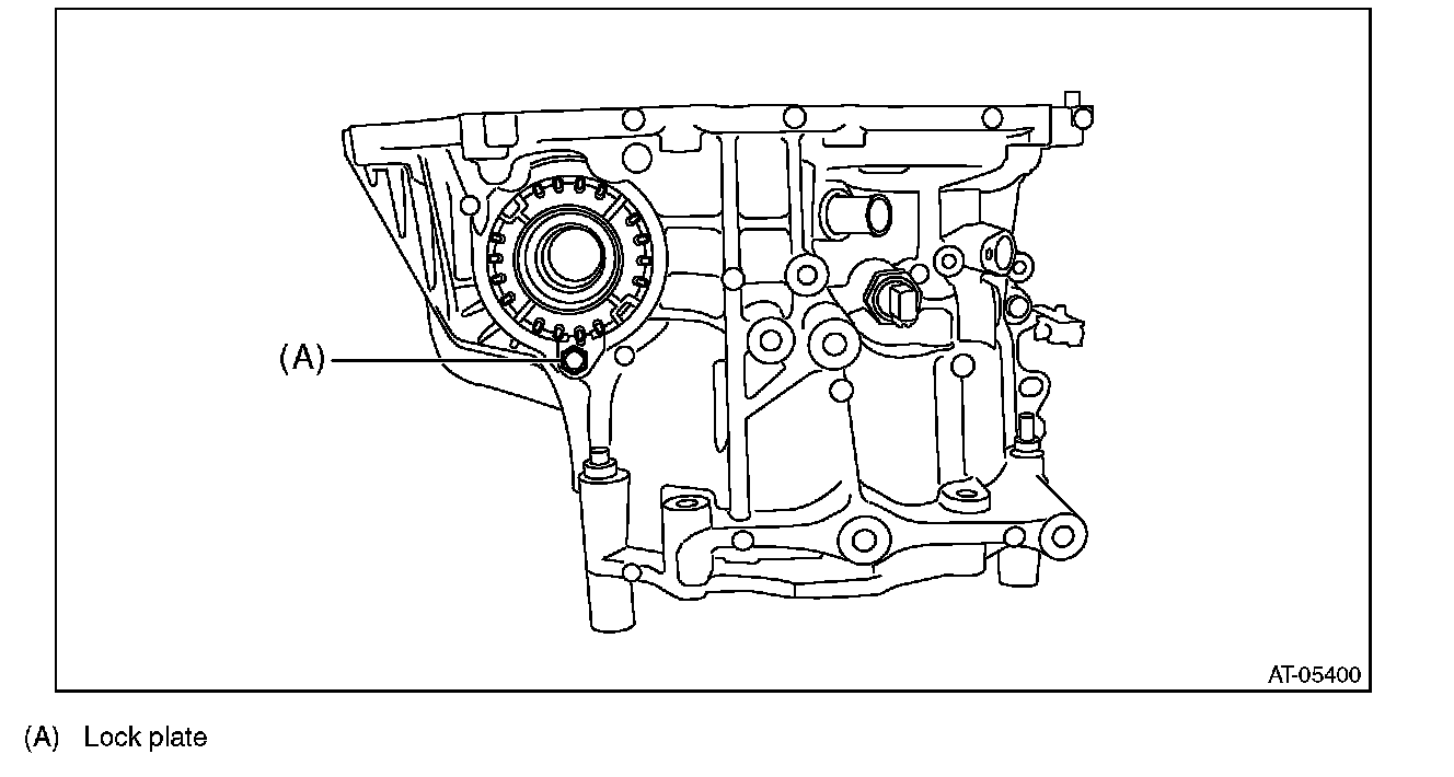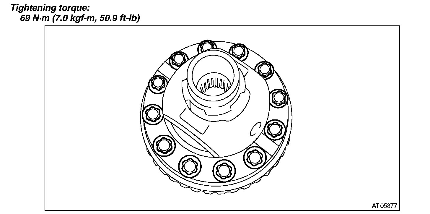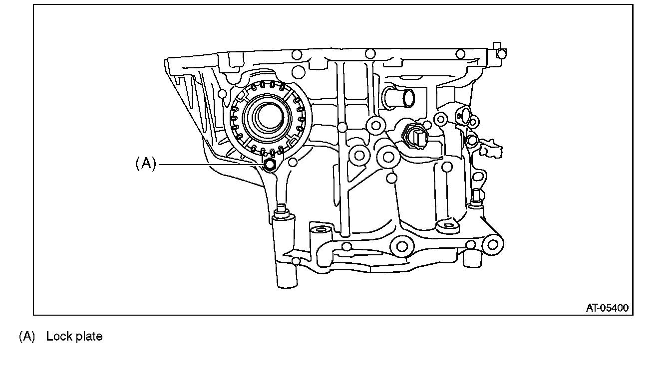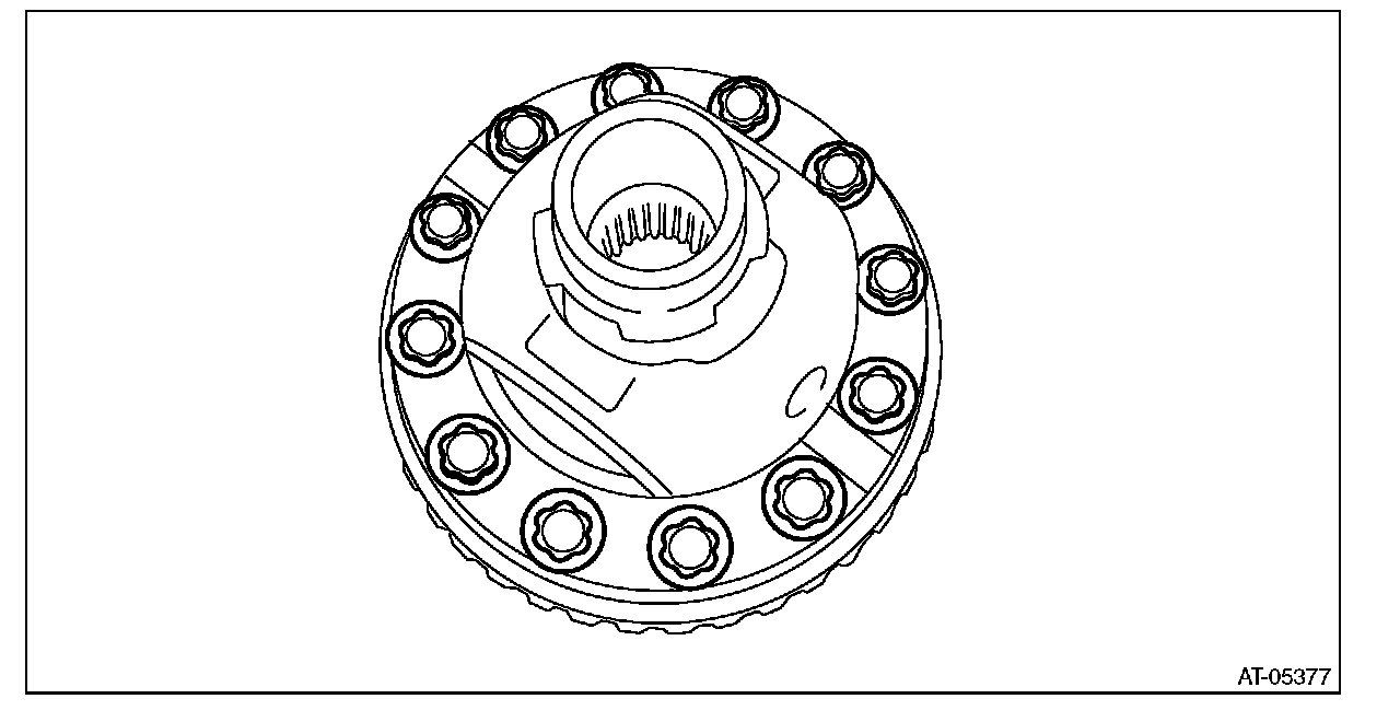 ^ Support the differential case assembly by hand to avoid damaging the retainer mounting hole of the converter case.