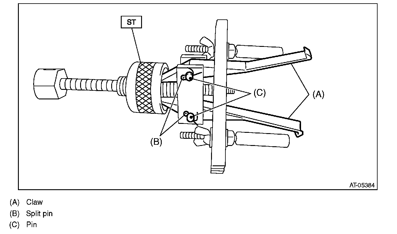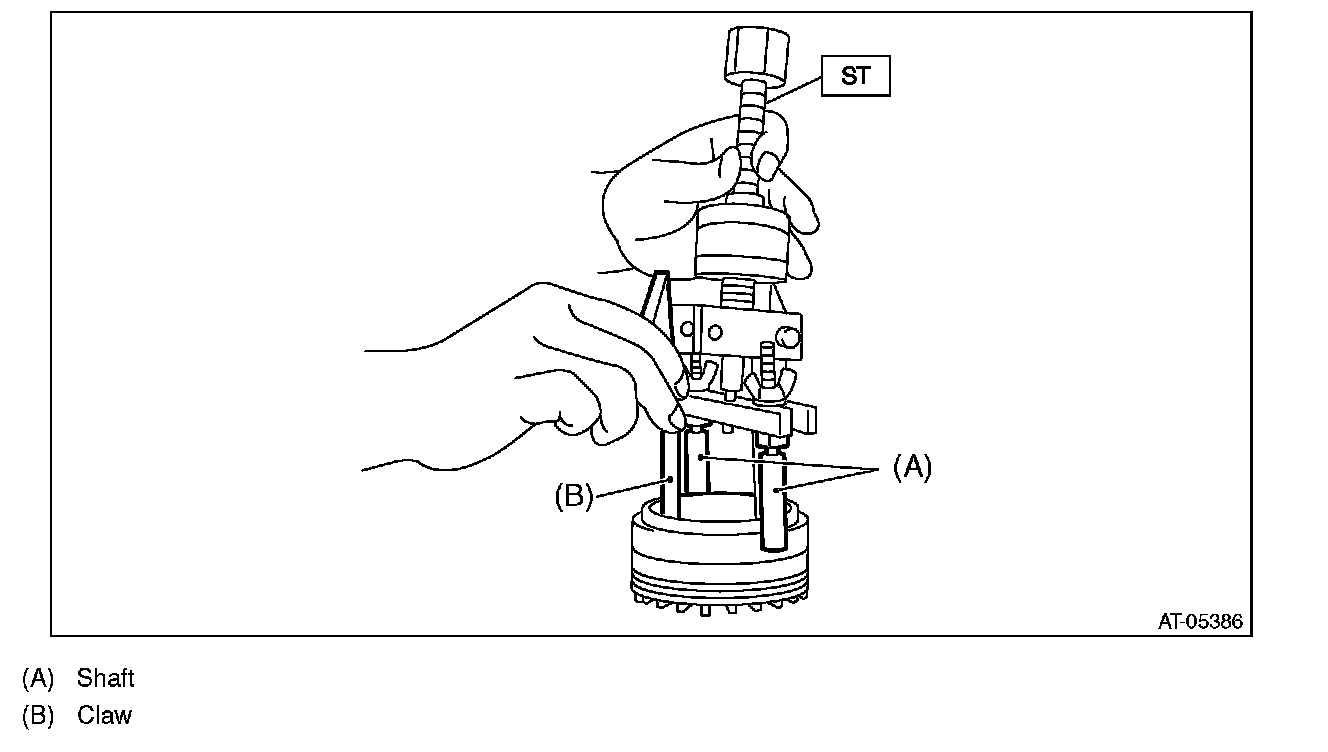6) Hold the shaft of ST to avoid removing from side retainer, and then remove the bearing outer race.
