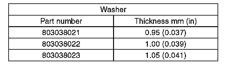 3) If the backlash is not within specification, select a washer from the table below and replace.