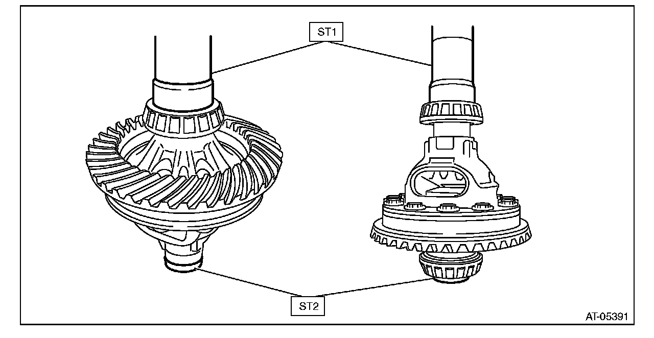 6) Using the ST, install the hypoid driven gear by tightening the installation bolt.