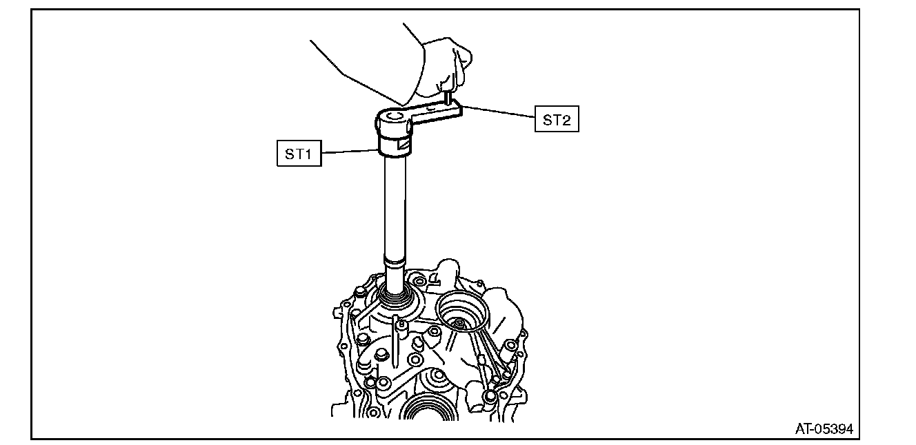 4) Rotate the drive pinion shaft more than ten times using ST1 and ST2.