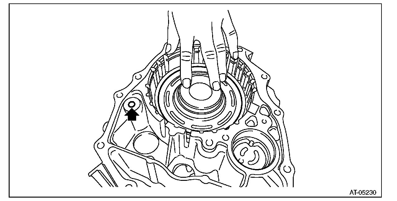 6) Check the operation of reverse brake piston by blowing compressed air intermittently from intermediate case hole.