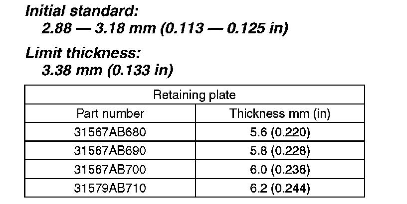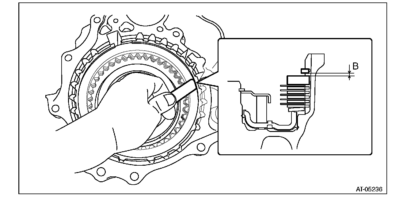14) Measure and record the clearance "B" between the retaining plate and snap ring.