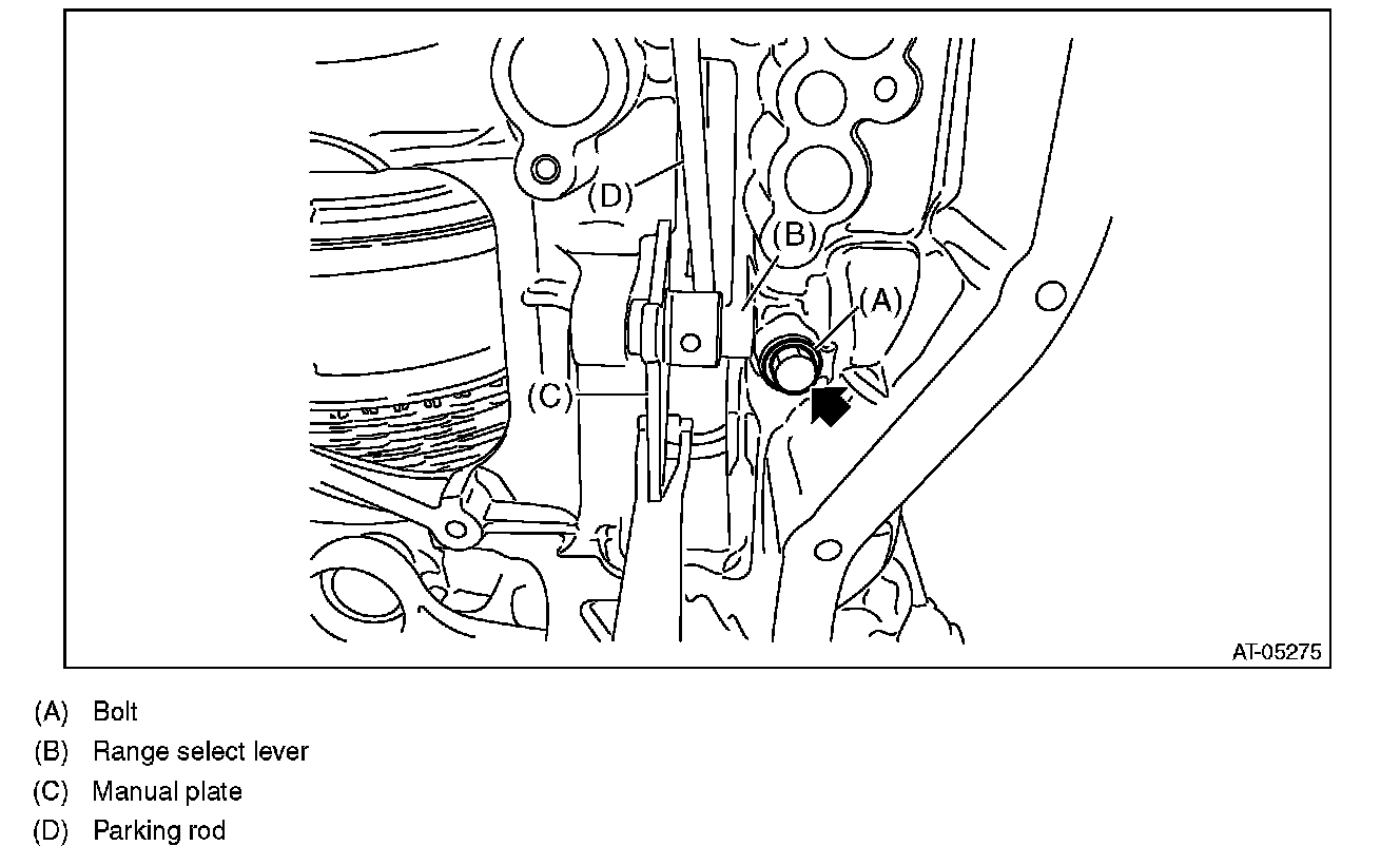 5) Remove the bolt and remove the range select lever, manual plate and parking rod.