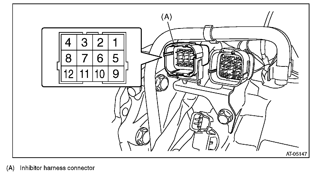 5) Repeat the above inspection in other gear ranges. If there is fault, adjust the inhibitor switch and select cable.