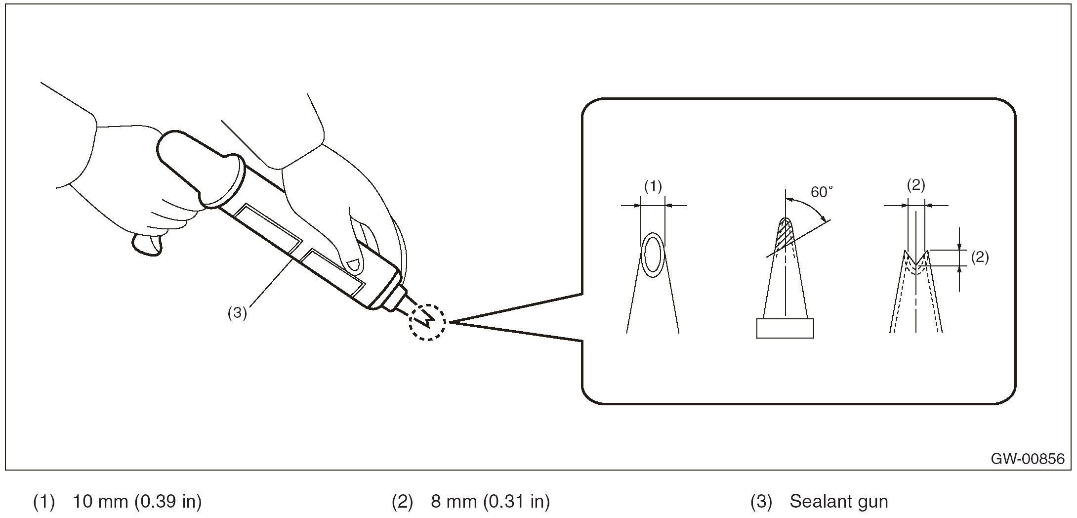 1. Cut the cartridge nozzle tip as shown in the figure, and set the adhesive in the sealant gun.