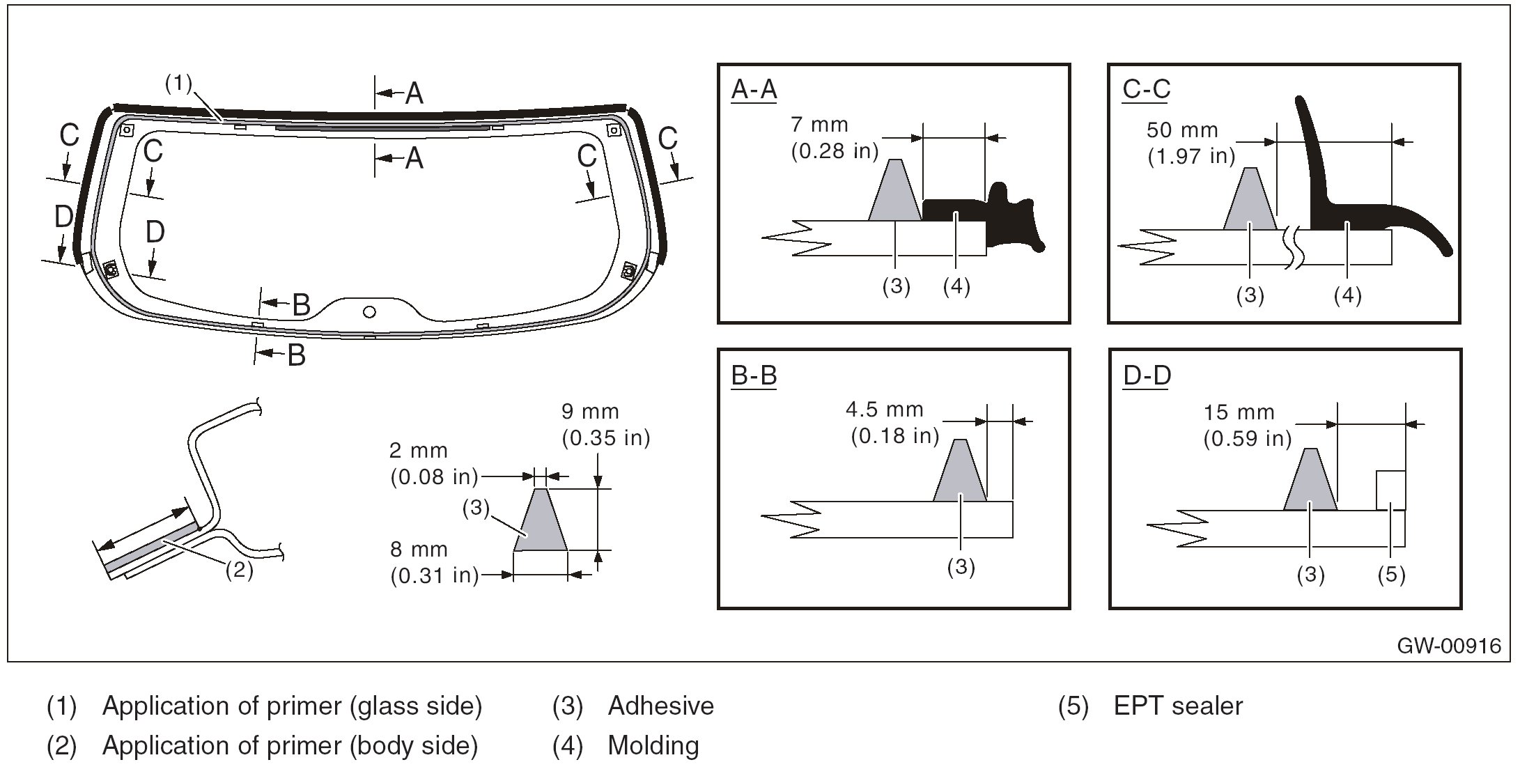 - For minimum drying time and vehicle standing time before driving after bonding, follow instructions or instruction manual from the adhesive manufacturer.