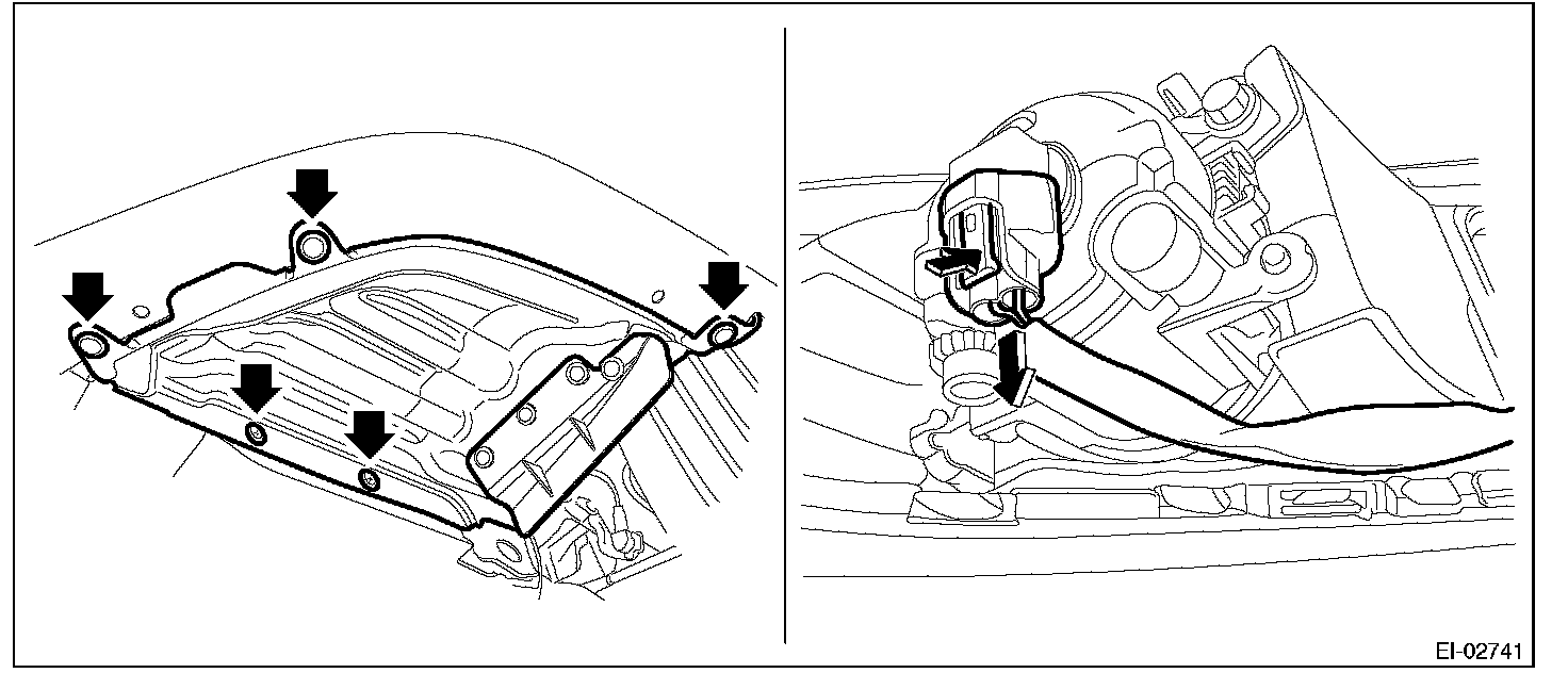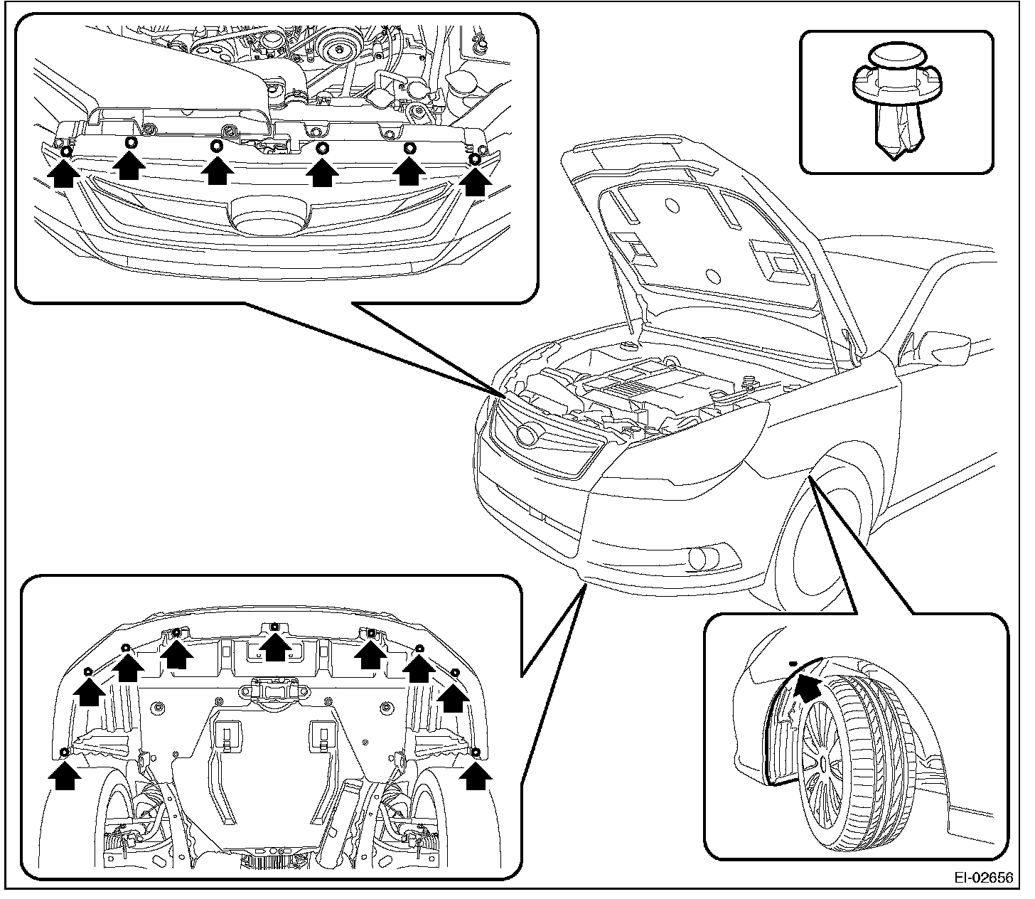 1. Remove the clips, turn over the front mud guard, and disconnect the fog light connector. (Model with fog light).