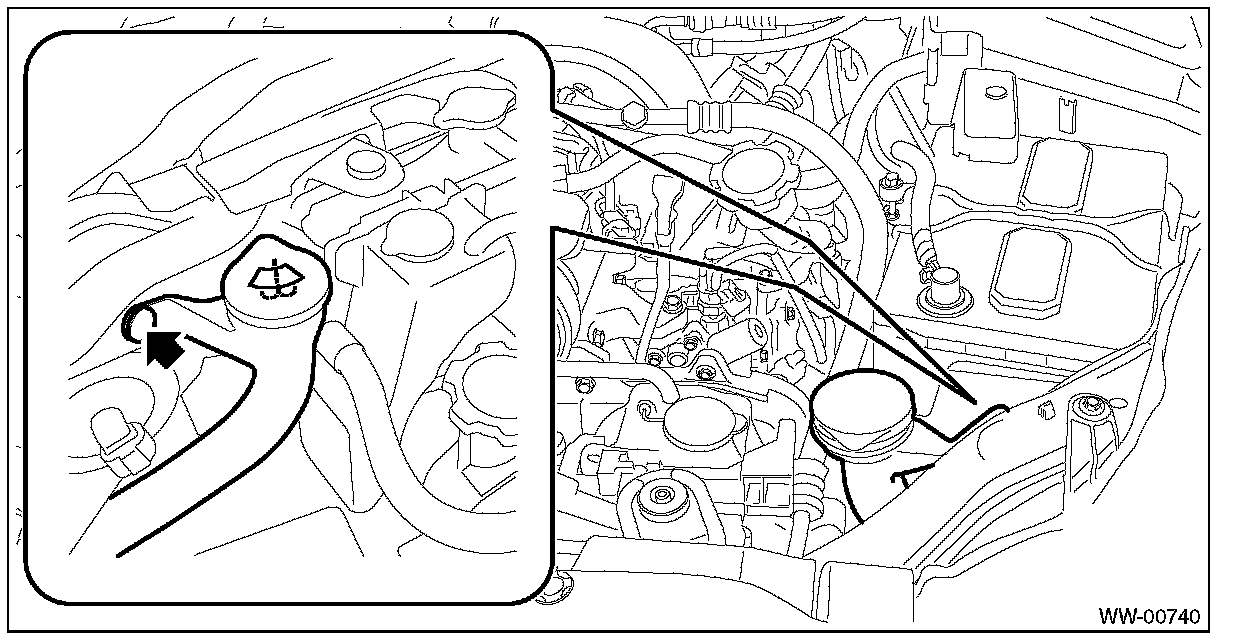 2. Prepare a container before disconnecting the washer hose and drain all washer fluid in the tank.