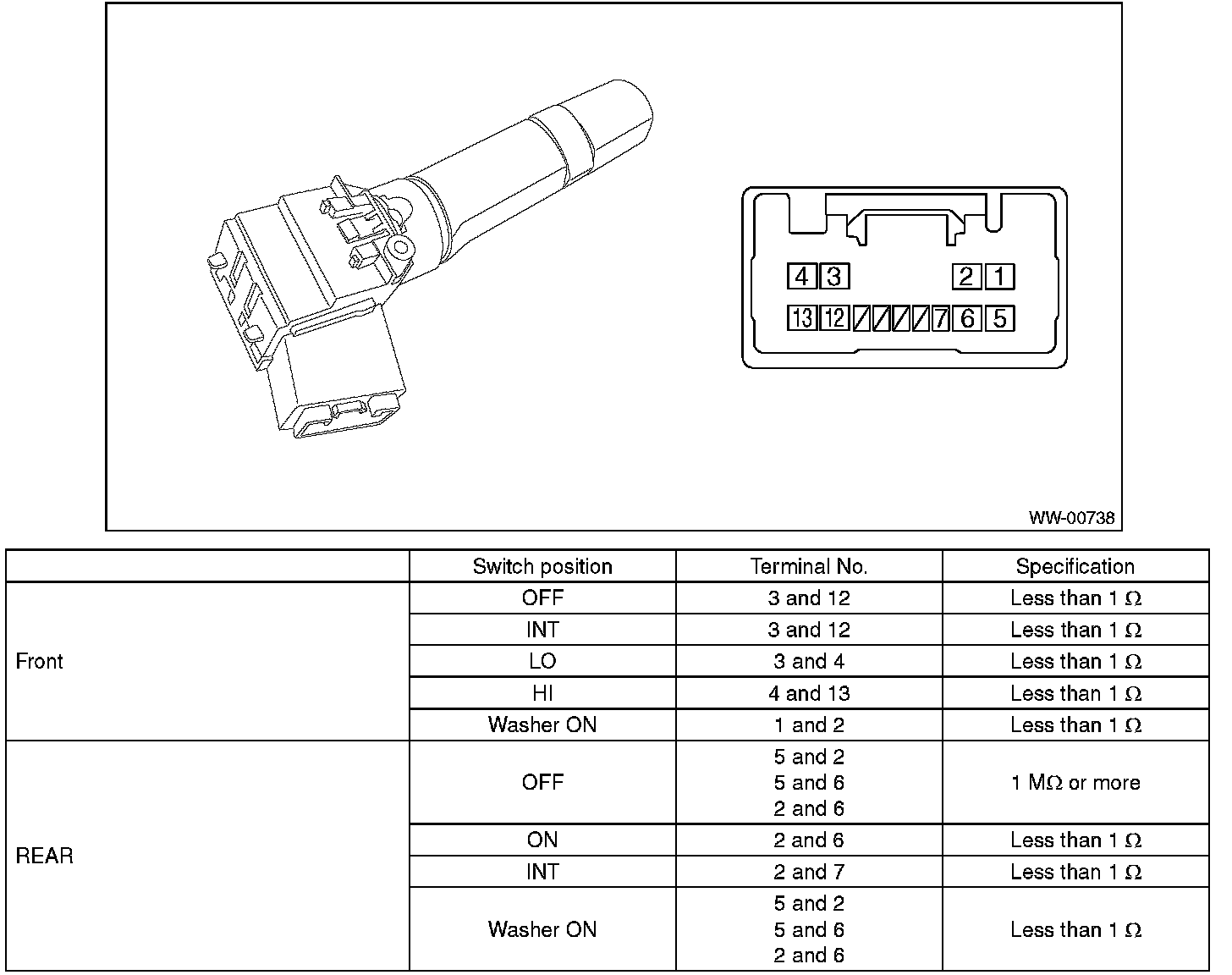 Wiper Switch: Testing and Inspection