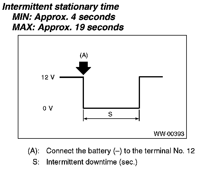 4. When the rear wiper switch is set to INT, is ON/OFF output repeated? (INT OFF time (when vehicle parked): 12 seconds)