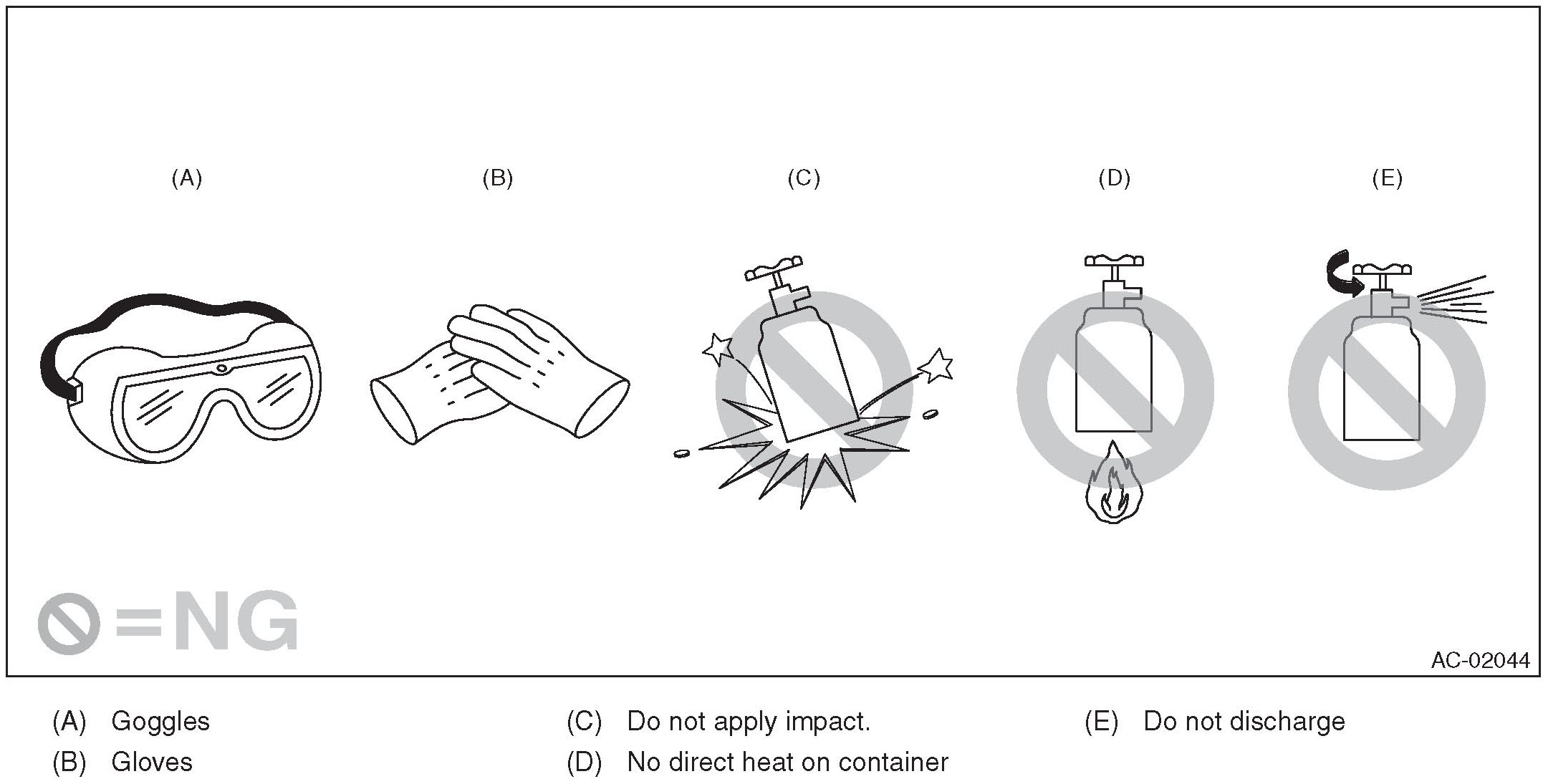 - When the engine is running, do not open the high-pressure valve of manifold gauge. The high-pressure gas will back-flow resulting in an explosion of the can.