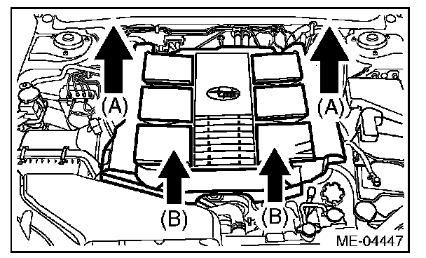 2. Lift up the front side holding two positions (B) while moving it in the forward direction of the vehicle.