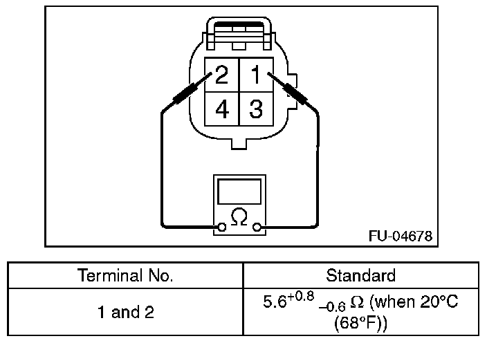 Measure the resistance between rear oxygen (A/ F) sensor terminals.