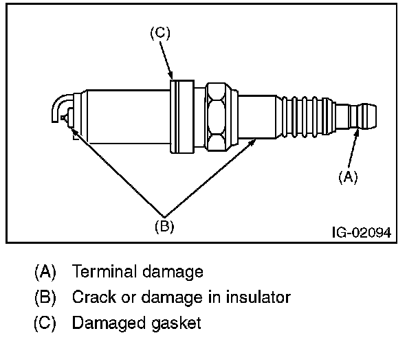 2. Check the spark plug electrode and condition of the insulator. If abnormal, check and repair the cause and replace the spark plug.