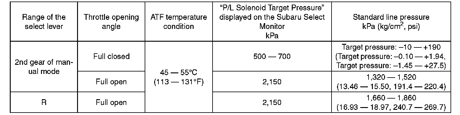 ^ Fully close or fully open the throttle valve in order to match the "P/L solenoid target pressure" displayed on the Subaru Select Monitor.