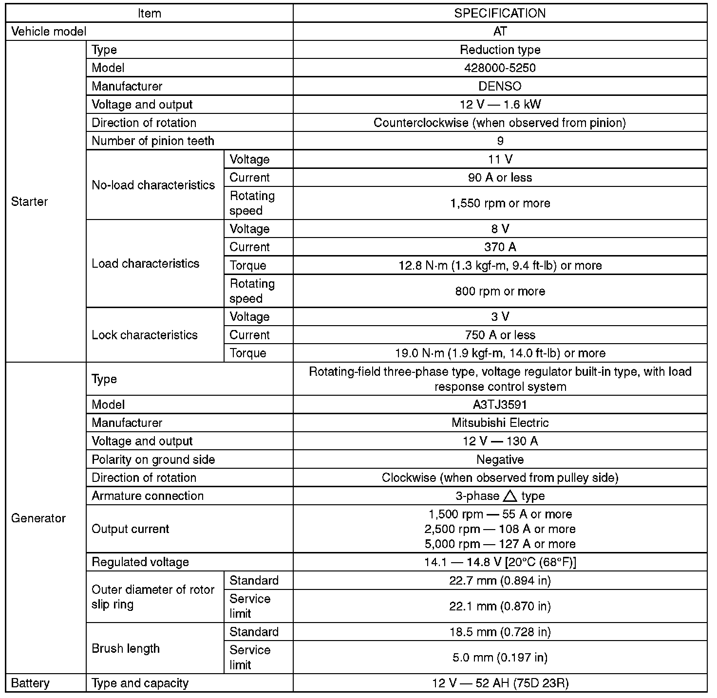 Electrical Specifications