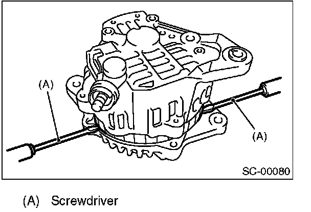 3. Insert the end of a flat tip screwdriver into the gap between stator core and front cover. Pry them apart to disassemble.