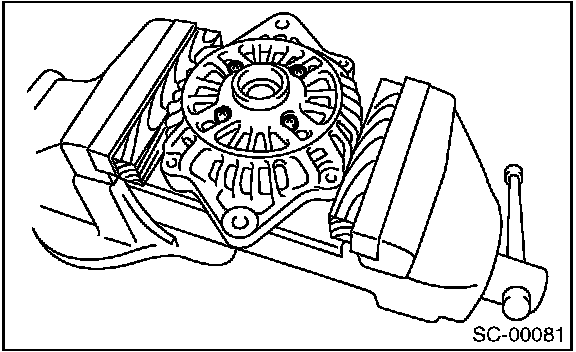 CAUTION: When holding the rotor with a vise, place aluminum plates or wooden pieces on the vise jaws to prevent rotor from damage.