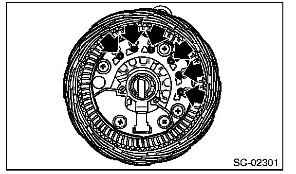7. Remove six bolts between the rectifier and stator coil, then remove the stator coil.