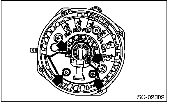 3. Remove the bolts which secure the rectifier, and remove the rectifier.